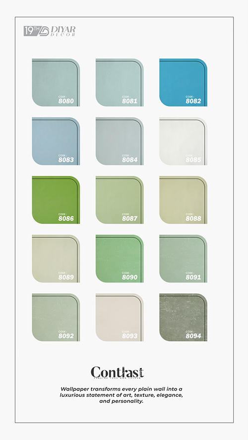 برای ایجاد آرامش و زیبایی در دکوراسیون، میتوانید طیف رنگی آبی آلبوم کاغذ دیواری کنتراست را انتخاب کنید. در این آلبوم از طیف رنگهای آبی آرام تا رنگهای آبی عمیق و سنگین را مشاهده میکنید. آبی روشن باعث ایجاد حس خنکی و سرزندگی میشود؛ در حالی که آبی نفتی برای فضاهای رسمی و خاص مناسب است.