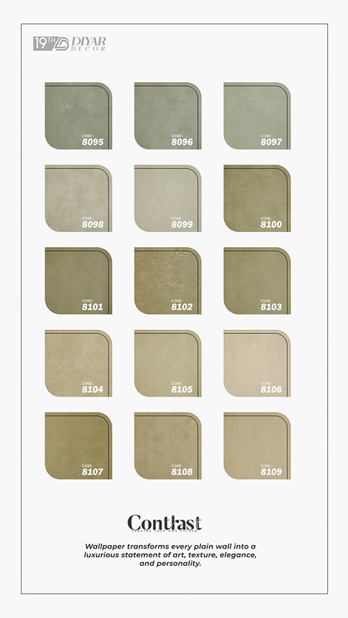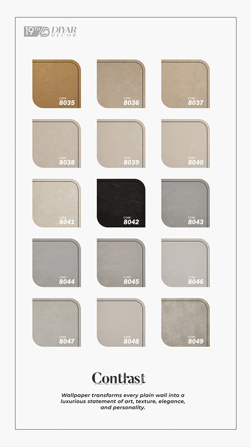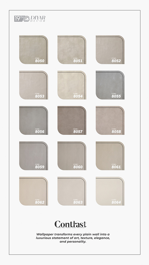 در آلبوم کاغذ دیواری کنتراست، شاهد وجود طرحهای ساده با بافتهای ظریف خواهید بود. این طرحها با وجود سادگی خود، زیبایی چشمنوازی دارند. این طرحها برای فضاهای کوچک، محیطهای رسمی و یا ترکیب با کاغذ دیواریهای طرحدار انتخاب مناسبی هستند. آنها حس لطافت و سادگی را به بیننده انتقال میدهند.