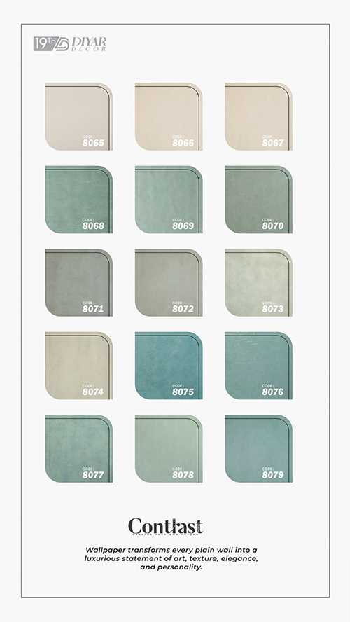 یکی از ویژگیهای برتر و ممتاز آلبوم کاغذ دیواری کنتراست CONTRACT، رنگبندی زیبا و متنوع آن است. این رنگها در عین تنوع بالا، با همدیگر هماهنگی خاصی دارند.