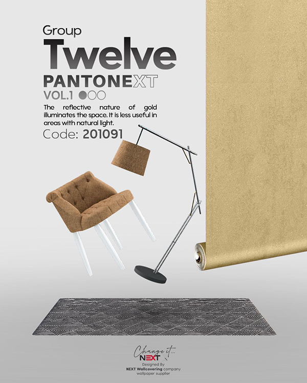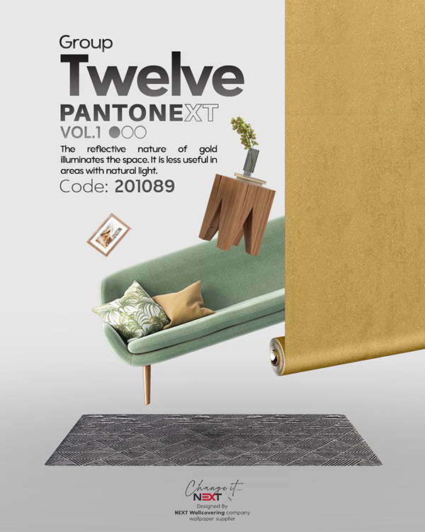 اگر مبلمان فضا از طیف کرم، قهوه‌ای روشن، شیری یا طوسی انتخاب شده باشد، طلایی وگاس جلوه‌ای بسیار دلپذیر ایجاد می‌کند. در فضاهای کلاسیک، استفاده از مبلمان عاجی یا قهوه‌ای تیره، کیفیت ظاهری این کاغذ دیواری را دوچندان می‌کند.