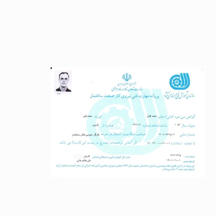 بارگذاری تصویر مدرک فنی و حرفه‌ای